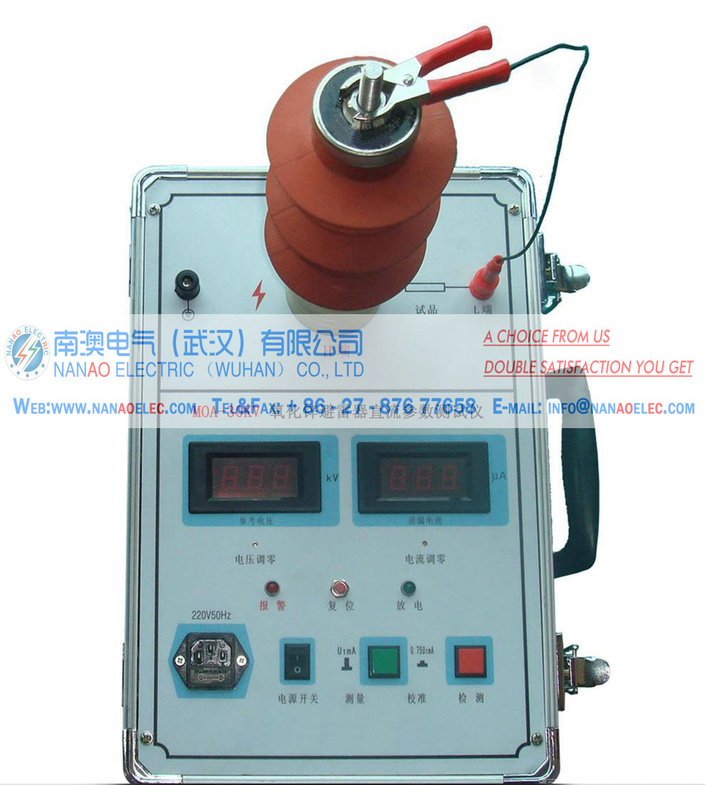NAMOA-30KV Oxide Arrester (MOA) Tester special applies to test gapless arrester MOA bad contact internal defects of power system under 10KV. Measured the leakage current under DC reference voltage (U1Ma) of MOA and 0.75 U1mA .