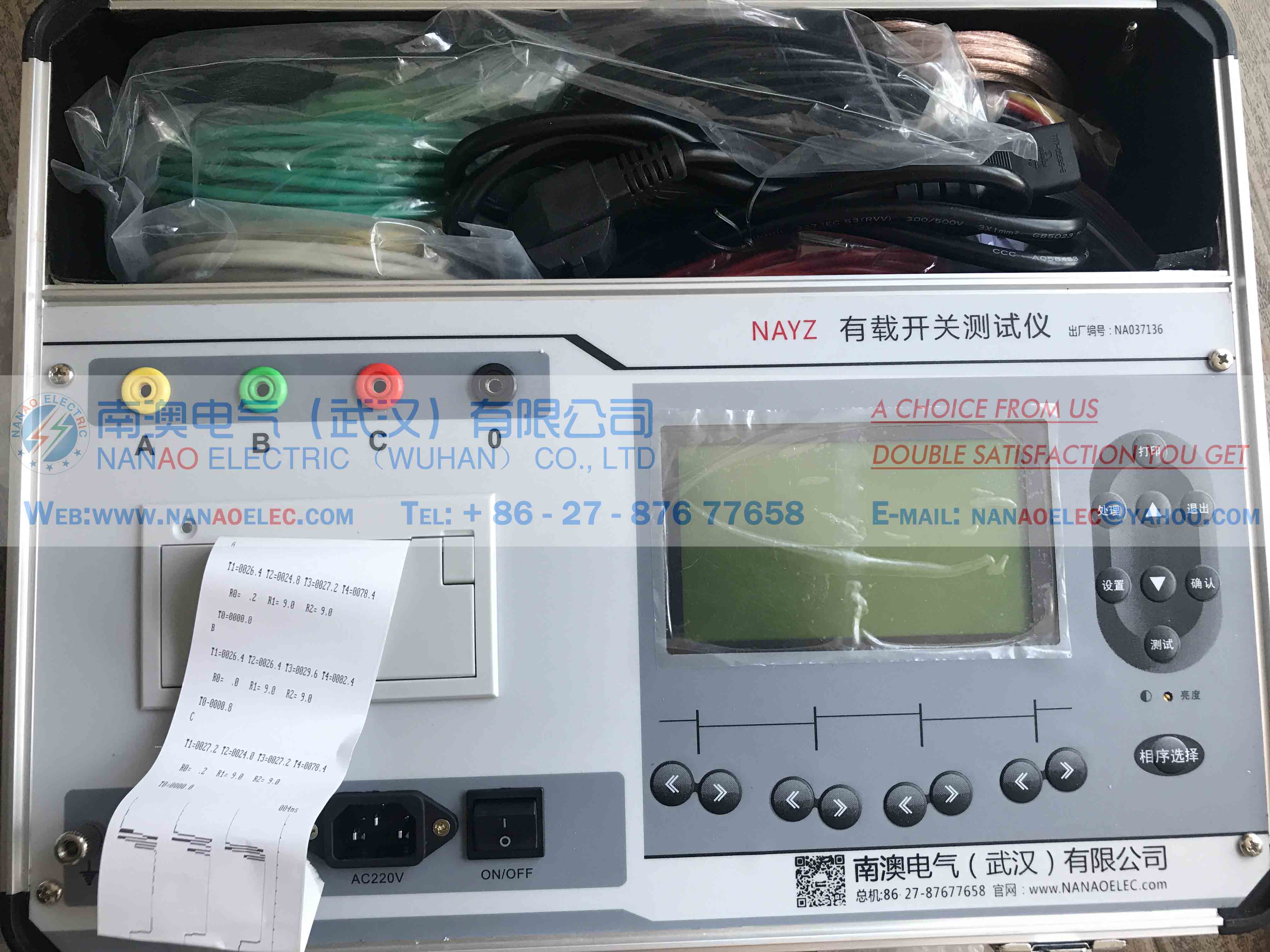 NAYZ transformer load tap tester is equipped with a front plate counter top for high-speed printer paper.