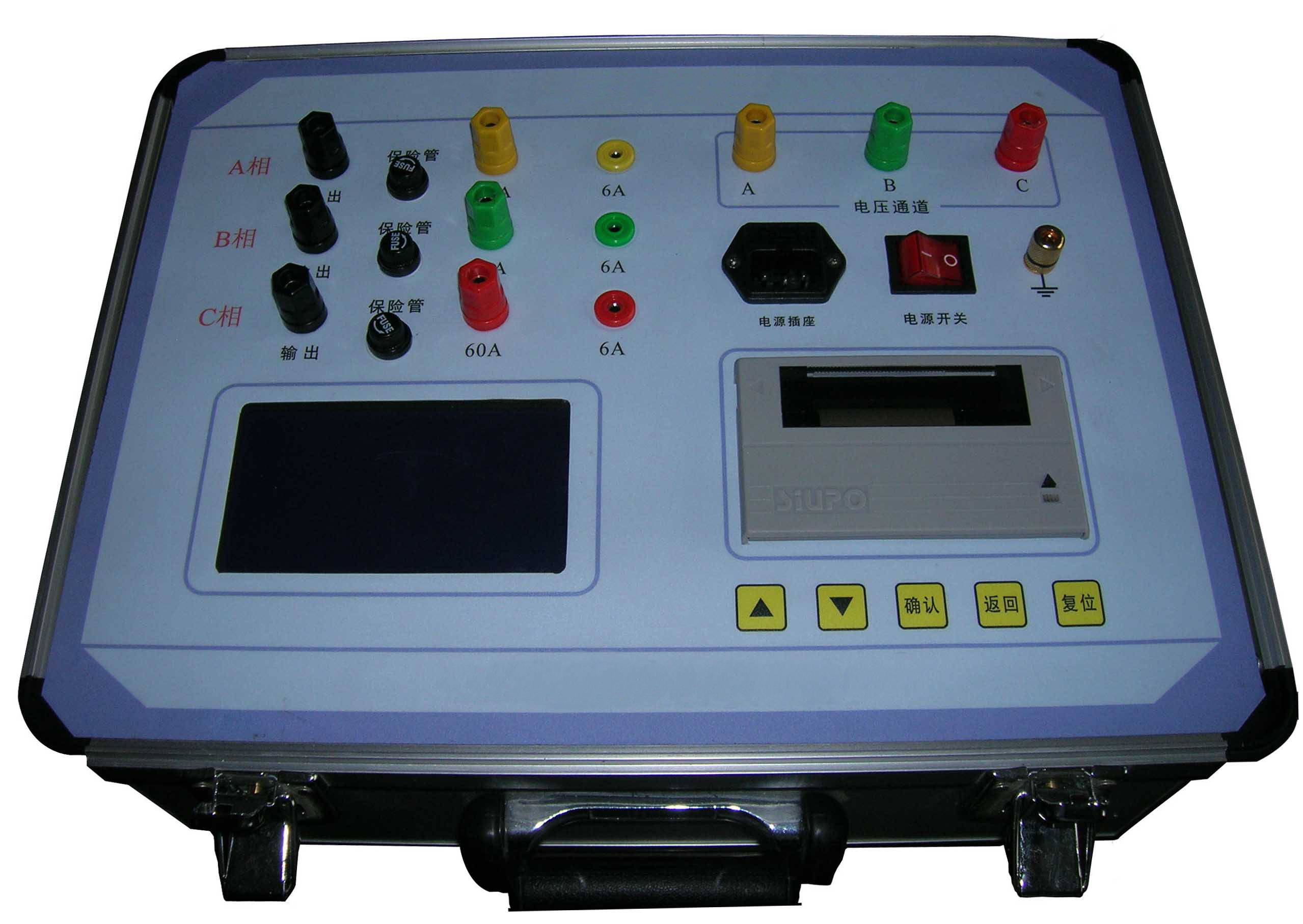 现在线路参数测试仪的面板带有三相过流过压保护,都是通过保险保护设备和电力人员的安全(同时必需按照高压试验安全操作规程,能够将设备的大地接地端子可靠接地)。